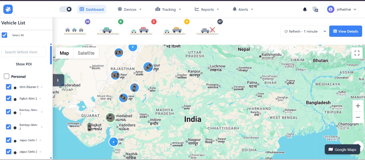 1. Live Vehicle Tracking: Monitor the real-time location of each vehicle on